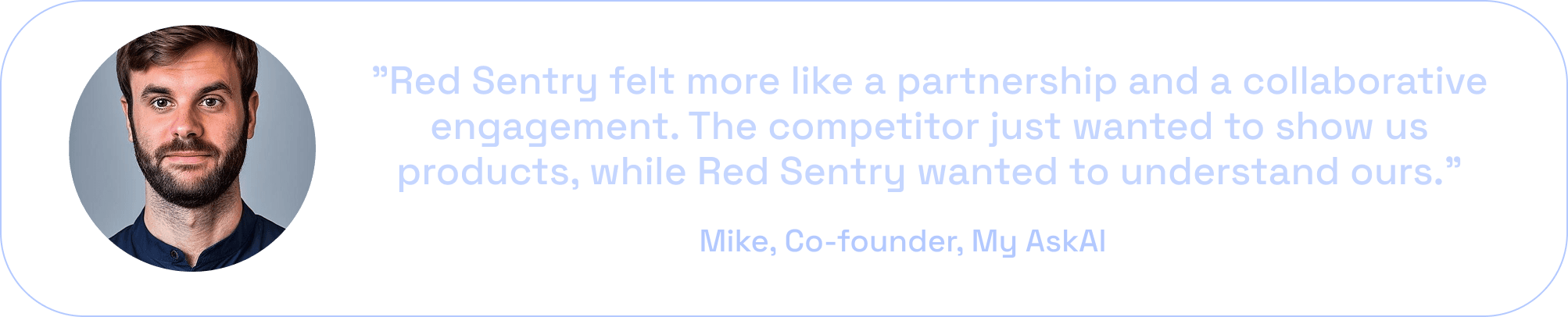 After evaluating several providers who focused more on sales demos than technical empathy, My AskAI chose Red Sentry.